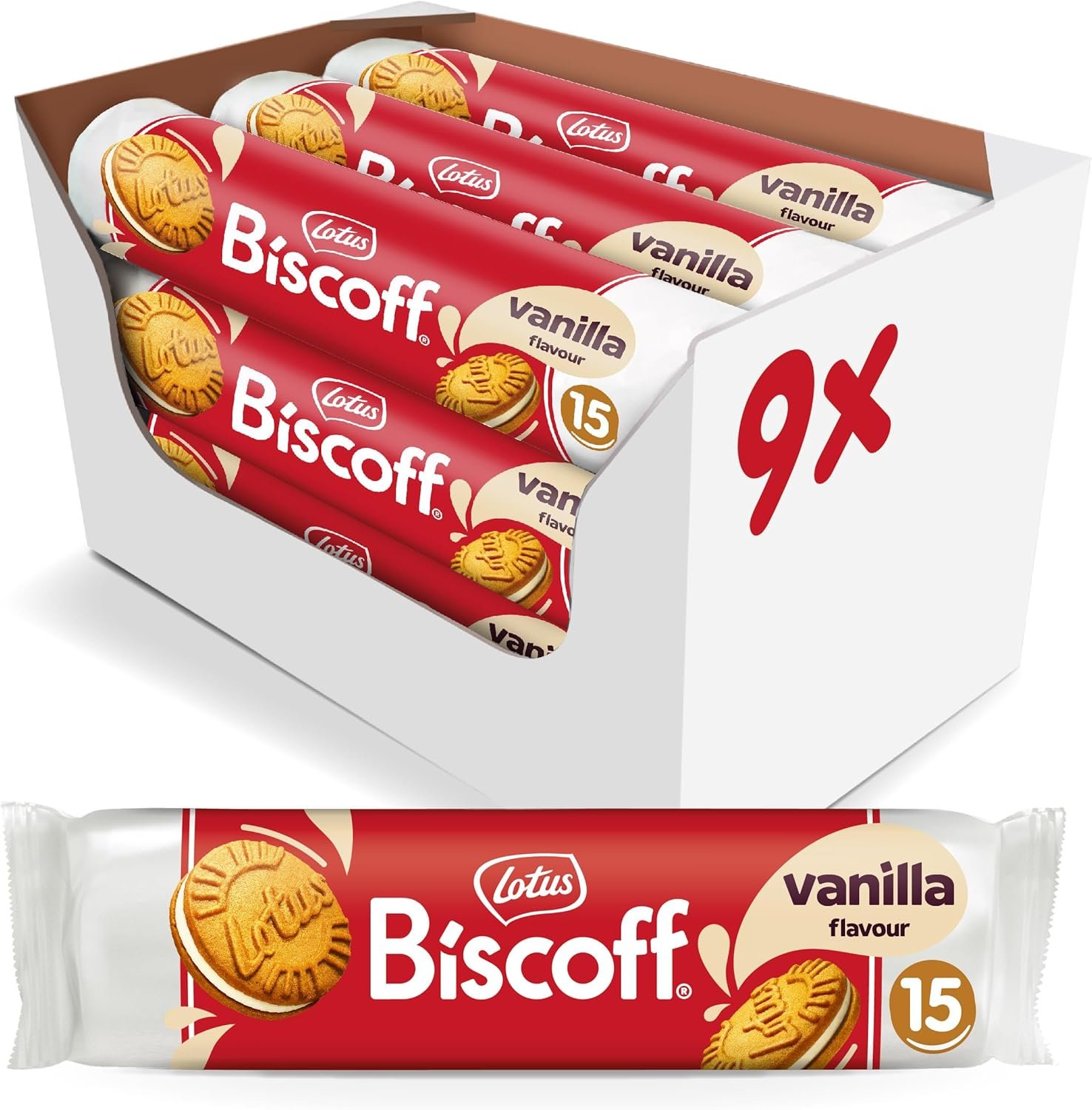 Lotus Biscoff Sandwich Cookies, Vanilla Flavour , 15 Cookies per pack, 5.29 Ounce Pack of 9