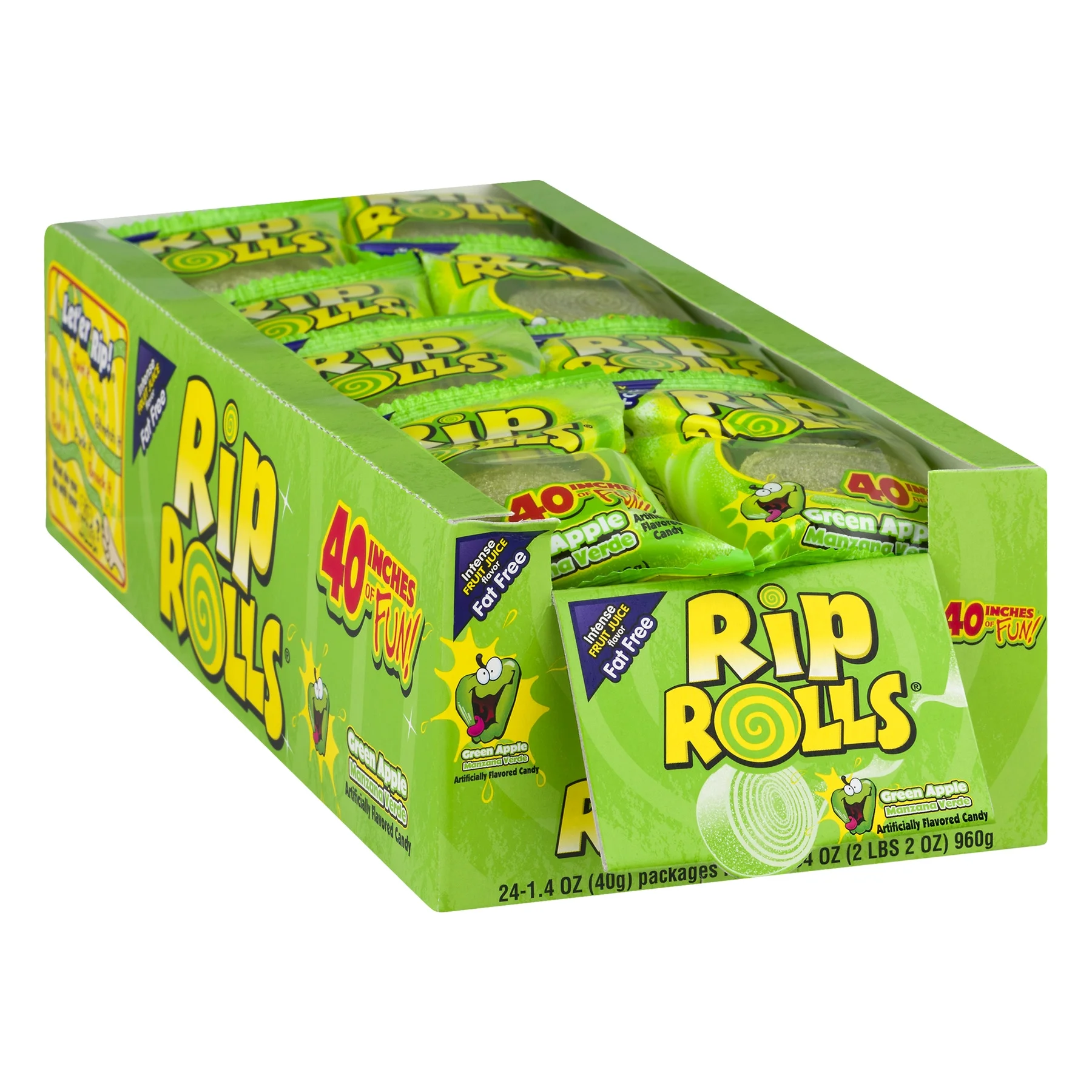 Needzo Rip Rolls Sour Candy Rolls, Green Apple Fruit Flavor